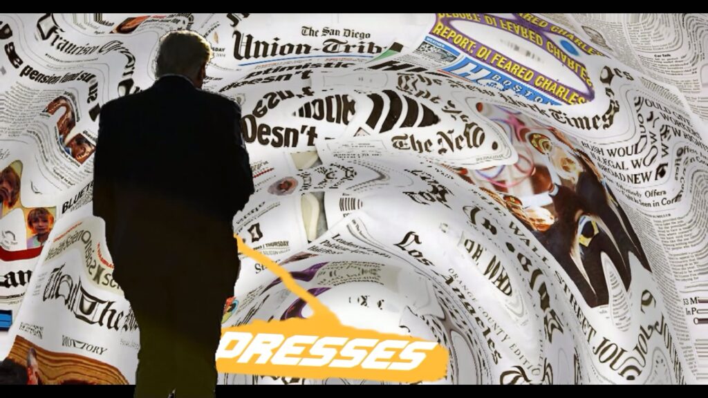 Der Höhepunkt des Videos kommt, als Trump, völlig von seinen Drahtziehern entfremdet, in einer verkehrten Welt mit dem Verzicht auf soziale Medien und digitaler Überwachung rebelliert. „Unplug Trump“ ist nicht nur ein Symbol für den Widerstand gegen die Ketten der modernen Welt, sondern auch ein Moment der Befreiung und Rückkehr zu einer analogen, wenn auch ironisch verzerrten Realität.