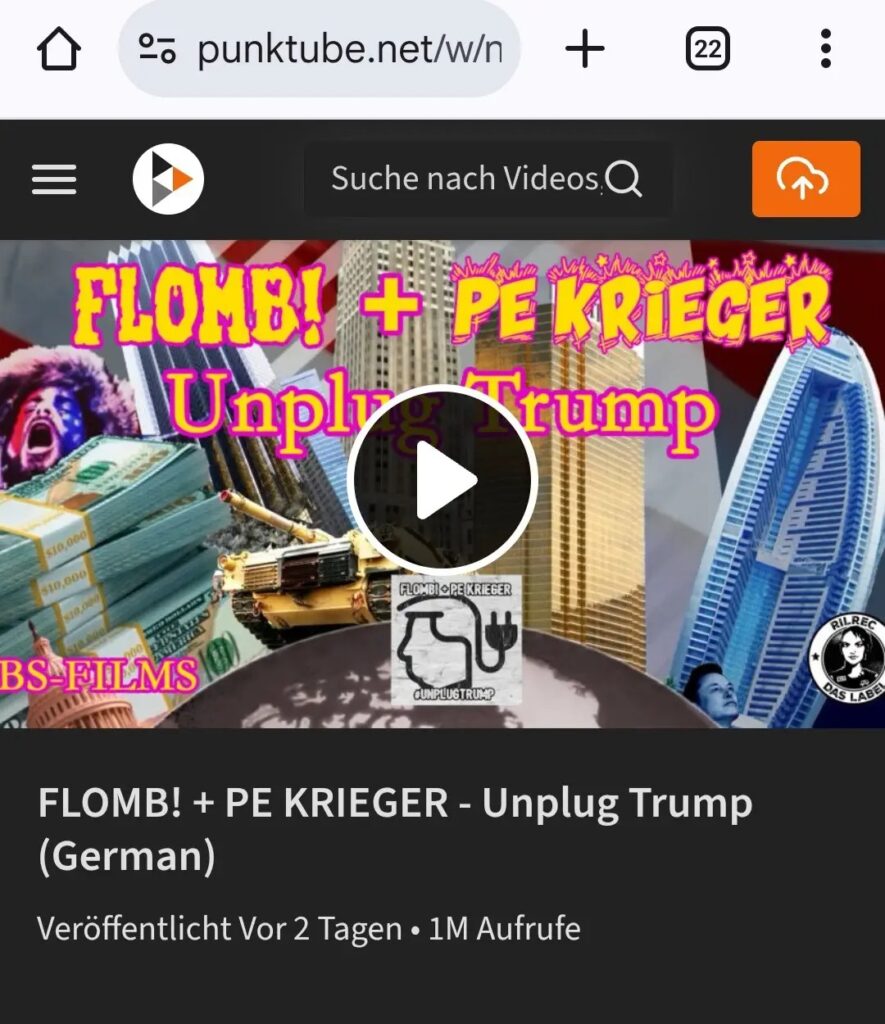 Pe setzt sich u.a. für die Initiative #unplugtrump von Mike Kuketz für ein freies und demokratisches Internetleben ohne US-Techoligarchen einsetzt und hatte einen frechen Punksong im Gepäck. Ein ambitoniertes Filmprojekt sollte entstehen, das nach knapp 3 Monaten in mühevoller Kleinstarbeit mit einem Stopmotion Video mit einem animierten Hampelmann in bekanntem blauen Anzug, roter Krawatte und gelber Haarpracht, endete und am 15.05.25 auf punktube seine Premiere feierte und erstaunlicherweise schnell viel Zuspruch in Form von über 1 Mio. zählbaren Clicks bekam, was zur Folge hatte, dass der Server des Host gesprengt wurde.